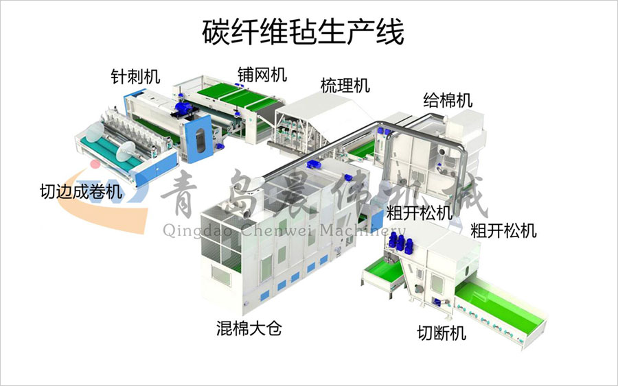 切斷機-開松機-振動給棉機-梳理機-鋪網機-針刺機-切邊成卷機